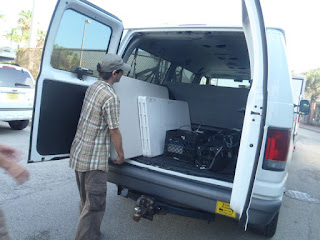 Evan packing tables in the van